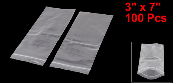 100Pcs Zip Lock Ziplock Bags Clear Plastic Poly Reclosable 2 Mil 3" x 7"