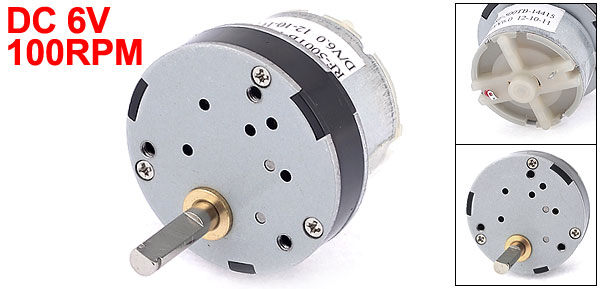 Product Name DC Geared Motor Rated Voltage DC 6V Output Speed 100RPM Shaft Diameter 5mm/ 0.24" Gearbox Part Size 40 x 10mm/ 1.5" x 0.87"(D*L) Motor Part Size 32 x 17mm/ 1.5" x 1.7"(D*L) Total Length(Approx) 45mm/ 1.8" Material Metal, Electronic Parts Color As Picture Shown Weight 92g Package Content 1 x DC Geared Motor - Reviews