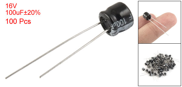 Product Name Aluminum Electrolytic Capacitor Type Radial Lead Maximum Temperature 105°C Withstand Voltage 16V Capacitance 100uF Capacitance Tolerance ±20% Body Size 6 x 5mm / 0.24'' x 0.2'' (D*L) Lead Spacing 2.5mm / 0.098'' Lead Length 25mm / 0.98'', 20mm / 0.79'' External Material Aluminum Weight 34g Color As Picture Shown Package Content 100 Pcs (±2%) x Electrolytic Capacitors - Reviews
