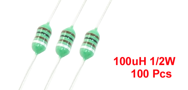 100uH 1/2W 4-Color Ring Axial Lead Type Fixed Inductor 100 Pcs