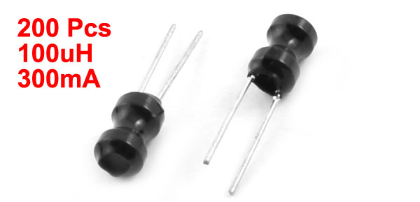 Product Name Radial Inductor Inductance 100uH Rating Current 300mA Tolerance 10% Body Size 4 x 6mm / 0.16" x 0.24"(D*H) Pin Size 0.5 x 14mm/ 0.2" x 0.55"(D*L) Lead Distance 2mm / 0.08" Color Black, Silver Tone Weight 59g Package Content 200Pcs(±2%) x Radial Inductor - Reviews