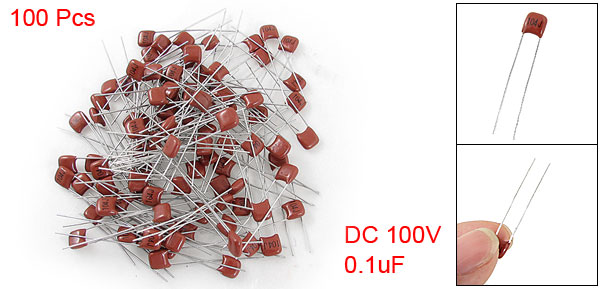 100V 0.1uF Mylar Metallized Polyester Film Capacitors 100 Pcs