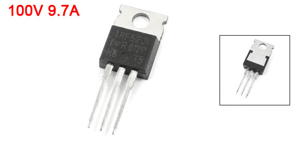 Product Name MOSFET Model No. IRF520 Type N-Channel Voltage(vdss) 100V Current(id) 9.7A RDS(on) 200mΩ 5.7A,10V Max.Vgs(th) 4V 250µA Power 48W Package Type TO-220-3 Mounting Hole Diameter 3.6mm/0.14" Pin Size 14 x 1.8mm/0.55" x 0.07"(L*Pitch) Total Size 29 x 10 x 4mm/1.1" x 0.39" x 0.16"(L*W*T) Color Black Weight 3g Package 1 x MOSFET - Reviews