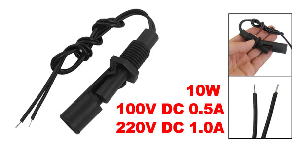 Product Name Float Switch Max Contact Rating 10W Max Switching Voltage 100V DC Max Switching Current 0.5A Max Breakdown Voltage 220V DC Max Carry Current 1.0A Max Contact Resistance 100mΩ Temperature Rating -10 ~ +60 °C / +85 °C Float Ball Material PP Float Body Material PP Float Ball Size(Approx) 45 x 17mm / 1.7" x 0.67"(L*D) Thread Dia(Approx) 1.56cm / 0.6" Hex Head Size(Approx) 23.5mm / 0.92" Body Total Length 86mm / 3.3" Cable Length 36cm / 14.1" Color Black Net Weight 61g Package Content 1 x Float Switch - Reviews