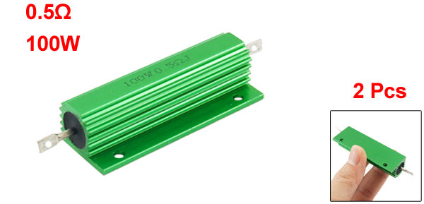 100W 0.5 Ohm Green Aluminum Housed Wirewound Resistors 2 Pcs