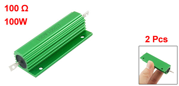 100W 100 Ohm Green Aluminum Housed Wirewound Resistors 2 Pcs
