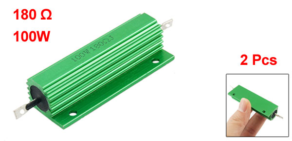 100W 180 Ohm Green Aluminum Housed Wirewound Resistors 2 Pcs