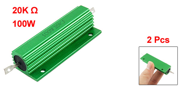 100W 20K Ohm Green Aluminum Housed Wirewound Resistors 2 Pcs