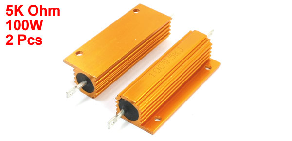100W 5K Ohm Gold Tone Aluminum Housing Wirewound Resistors 2Pcs
