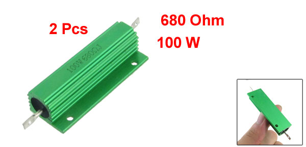 Product Name Aluminum Housed Resistor Resistance Value 680 Ohm Power Rating 100W Resistance Tolerance ± 5% (J) Body Size 59 x 15mm/ 2.32" x 0.59" (L*D) Mounted Hole Size 1.8mm/ 0.07", 3mm/ 0.12" Total Size 81 x 21 x 15mm/ 3.2" x 0.83" x 0.59" (L*W*T) Casing Material Aluminum Color Green Weight 58g Package Content 2 x Aluminum Housed Resistor - Reviews