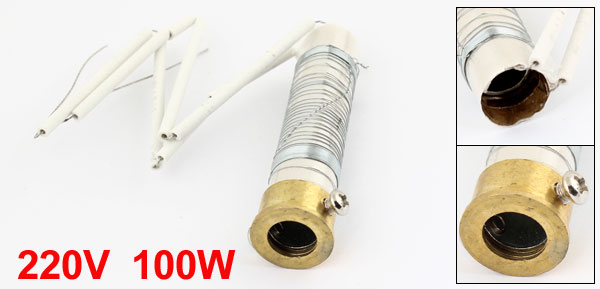 Product Name Soldering Heating Element Core Working Voltage 220V Power 100W Electrical Strength 1500V 50Hz Body Size 7 x 2cm/ 2.8" x 0.8"(L*Max.D) Cable Length 20cm/ 7.9" Material Metal Color White, Gold Tone Net Weight 35g Package Content 1 x Soldering Heating Element Core - Reviews