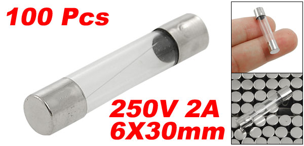 Product Name Glass Tube Fuses Features Fast Blow(F) Low Breaking Capacity(L) Rated Voltage 250V Rated Current 2A Specification 6 x 30mm Diameter 6mm / 0.236" Length 30mm / 1.181" Quantity 100(±2%) Material Glass Color As Picture Show Weight 110g Package 100 x Glass Tube Fuses - Reviews