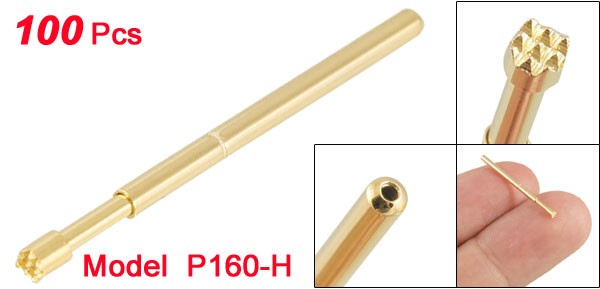 Product Name Spring Probes Quantity 100±2% Pcs Model P160-H Material Metal Tip Diameter (Approx) 1.5mm/ 0.059" Barrel Diameter (Approx.) 1.36mm/ 0.054" Overall Length(Each) 24.5mm / 0.96" Color Gold Tone Net Weigth 19g Package Content 100 x Spring Probes - Reviews