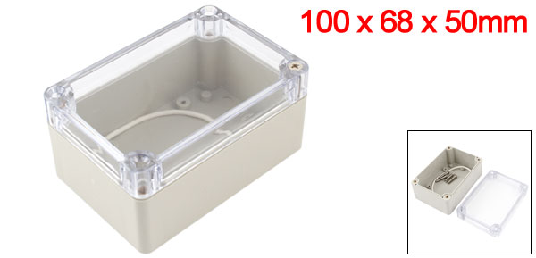 Product Name Junction Box Mounted Type Surface Mounted External Size 100 x 68 x 50mm/4" x 2.7" x 2"(L*W*H) Internal Size 90 x 60 x 48mm/3.5" x 2.4" x 1.8"(L*W*H) Fixing Hole Diameter 8mm/0.3" Fixing Hole Center Distance 80 x 50mm/3.1" x 2"(L*W) Material Plastic Color Gray, Clear Net Weight 104g Package 1 x Junction Box - Reviews