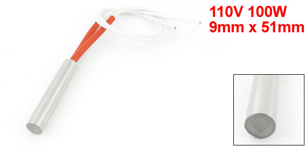 Product Name Cartridge Heater Material Stainless Steel, PVC, Nylon Rated Voltage AC 110V Power 100W Heater Size (Approx.) 0.9 x 5.1cm / 0.35" x 2" (D * L ) Wire Length(Approx.) 25.7cm / 10.1" Color Silver Tone, White,Red Weight 24g Package Content 1 x Cartridge Heater - Reviews