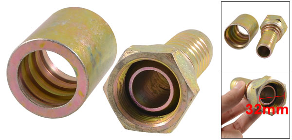 Product Name Hydraulic Pipe Connector Material Metal Thread Size 1" PT Female Thread Dia. 32mm Barb End Outer Dia. 24mm/ 0.94" Overall Size 85 x 43mm/ 3.3" x 1.7"(L*Max.D) Cylinder Socket Size 50 x 39 x 43mm/ 2" x 1.6" x 1.7" (L*Inner D*OD)