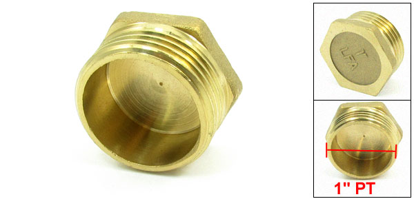 Product Name Hex Head Pipe Plug Color Gold Tone Material Brass Thread Diameter 1" PT(31mm) Hex Side to Side Diatance 12mm/0.5" Total Size 1.6 x 3.5 cm/0.6" x 1.4"(L*Max.D)