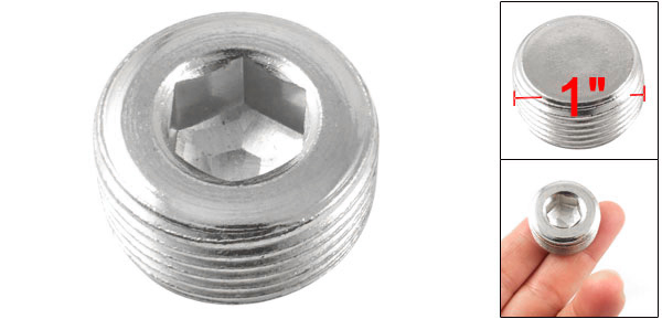 Product Name Hex Head Pipe Plug Color Silver Tone Material Metal Thread Diameter 26mm/ 1" Hex Side to Side Diatance 12mm/ 0.47" High 13.6mm/ 0.53" Net Weight 42g Package Content 1 x Hex Head Pipe Plug - Reviews