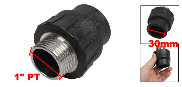 1"PT Male Thread 30mm Slip Black PPR Straight Air Connector Adapter