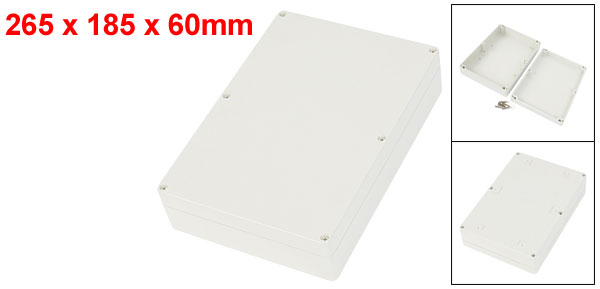 Product Name Junction Box Mounted Type Surface Mounted External Size 265 x 185 x 60mm/10.4" x 7.3" x 2.4"(L*W*H) Internal Size 255 x 175 x 50mm/ 10" x 6.9" x 2"(L*W*H) Material Plastic Color As Picture Show Net Weight 510g Package 1 x Junction Box - Reviews