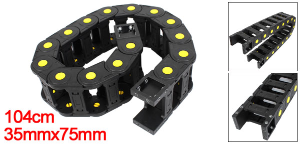 Product Name Cable Drag Chain Material Plastic Internal Size 35 x 75 x 35mm/ 1.4" x 3" x 1.4"(L*W*H) External Size 113 x 55mm/ 4.4" x 2.2"(W*H) Bending Radius R 16cm/ 6.3" Total Length 104cm/ 3.4Ft Color Black Net Weight 1946g Package Content 1 x Cable Drag Chain - Reviews