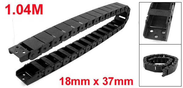 Product Name Cable Drag Chain Material Plastic Design Open on Both Sides Internal Size 18 x 37mm/ 0.71" x 1.5"H*W) External Size 35 x 47mm/ 1.38" x 1.85"(H*W) Total Length 1.04M/ 40.94'' Color Black Net Weight 390g Package Content 1 x Cable Carrier Drag Chain - Reviews