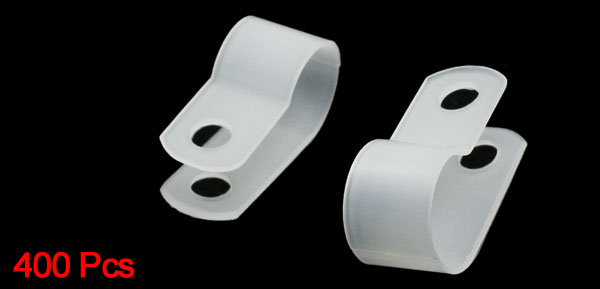 10.4mm White Plastic Cable Wire Hose Mount R Clip Clamp Fastener 400Pcs