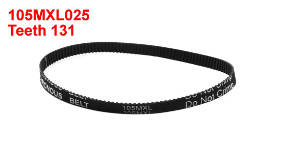 Product Name Timing Belt Model 105MXL025 Number of Teeth 131 Pitch 2.032mm / 0.08" Belt Width 6.4mm / 0.25"(1/4") Pitch Line Length 266.19mm/10.5" Material Rubber Color Black Weight 4g Package Content 1 x Timing Belt - Reviews