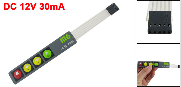 Product Name Membrane Switch Key Type 1x4 Voltage DC 12V Current 30mA Contact Resistance >=100 Ohm Force 250-350g Contact Bounce >1s Pad Size 107 x 20 x 0.8mm4.2'' x 0.8'' x 0.03''(L*W*T) Cbale Length 62mm/2.4'' Connector Pitch 2.54mm/0.1'' Material Plastic Color As Picture Shown Weight 5g Package Content 1 x Membrane Switch - Reviews