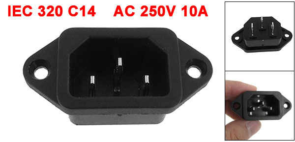 Product Name Power Inlet Socket Power Supply AC 250V 10A Plug Type IEC 320 C14 Pins Number 3 Mounting Type Screw Type Mounting Size 2.7 x 2 x 2.1cm / 1.1" x 0.8" x 0.83" (L*W*T) Mounting Screw Pitch 4cm / 1.6" Overall Size 5 x 2.2 x 2.7cm / 2" x 0.9" x 1.1" (L*W*T) Material Plastic, Metal Color Black, Silver Tone Net Weight 10g Package Content 1 x Power Inlet Socket - Reviews