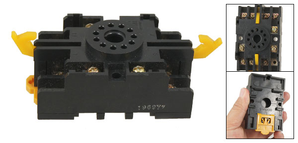 Details10A 250V AC Round 11 Pin 11PFA Relay Socket Base DIN Rail Mount Locking Arms  Item Name Relay Socket Type 11PFA Suitable for 11 Round Pin Relay Size 8 x 5cm / 3" x 1.1" x 1.2" (L*W*D) Material Plastic Color Black Weight 74g Package Content 1 x Power Replay Socket