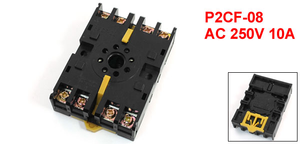 Product Name Relay Socket Base Model P2CF-08 Rated Load 10A 250VAC Pin Quantity 8 Total Size(Approx) 70 x 50 x 19mm/2.8" x 2" x 0.75"(L*W*H) Mounting Size M4X20 External Material Plastic, Metal Main Color Black Weight 55g Package Content 1 x Relay Socket Base - Reviews