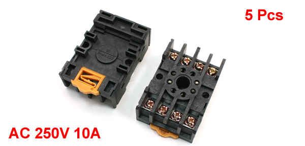 10A 250VAC MK2 Series Relay 8-Pin 35mm Din Rail Socket Holder PF-085A 5 Pcs