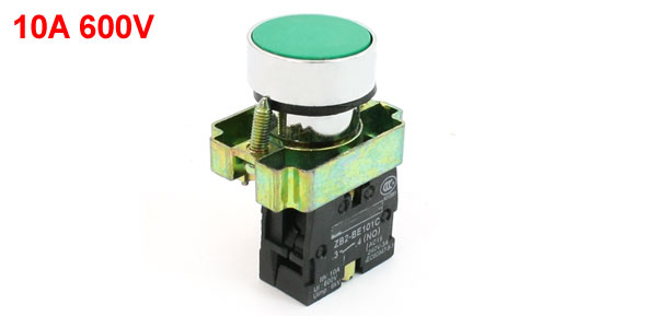 10A 600V SPST N/O Momentary Action Green Flat Top Push Button Switch