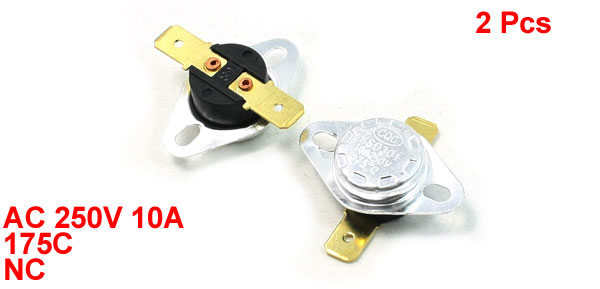 10A AC 250V Volt 2 Flat Pin Soldered 175C NC. Thermal Plastic Thermostat 2PCS