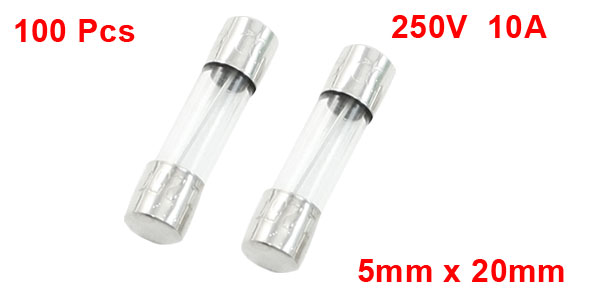 10Amp 250V Replacement Cylindrical 5mm x 20mm Glass Tube Fuses 100 Pieces