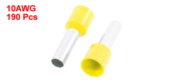 10AWG Wire Plastic Sleeve Pre-Insulated Ferrules Terminals E6012 Yellow 190Pcs