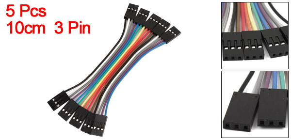 Product Name Jumper Wire Number 3 Pin Type Female to Female Pitch 2.54mm Pin Head Size(Each One) 14 x 2.5 x 2.5mm/0.55" x 0.1" x 0.1"(L*W*T) Total Length 10cm/4" Color Colorful Metarial Plastic Net Weight 9g Package Content 5 Pcs x Jumper Wires - Reviews
