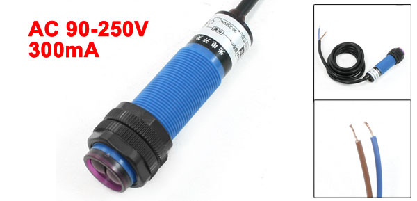 Product Name Photoelectric Switch Sending Light Infrared Rays Model E3F-DS10Y1 Working Voltage AC 90-250V Working Current 300mA Sensory Distance 10cm Output Type NO Thread Diameter 18mm/0.7'' Body Size 2.3 x 7cm/0.9" x 2.7'' (Max.D*L)