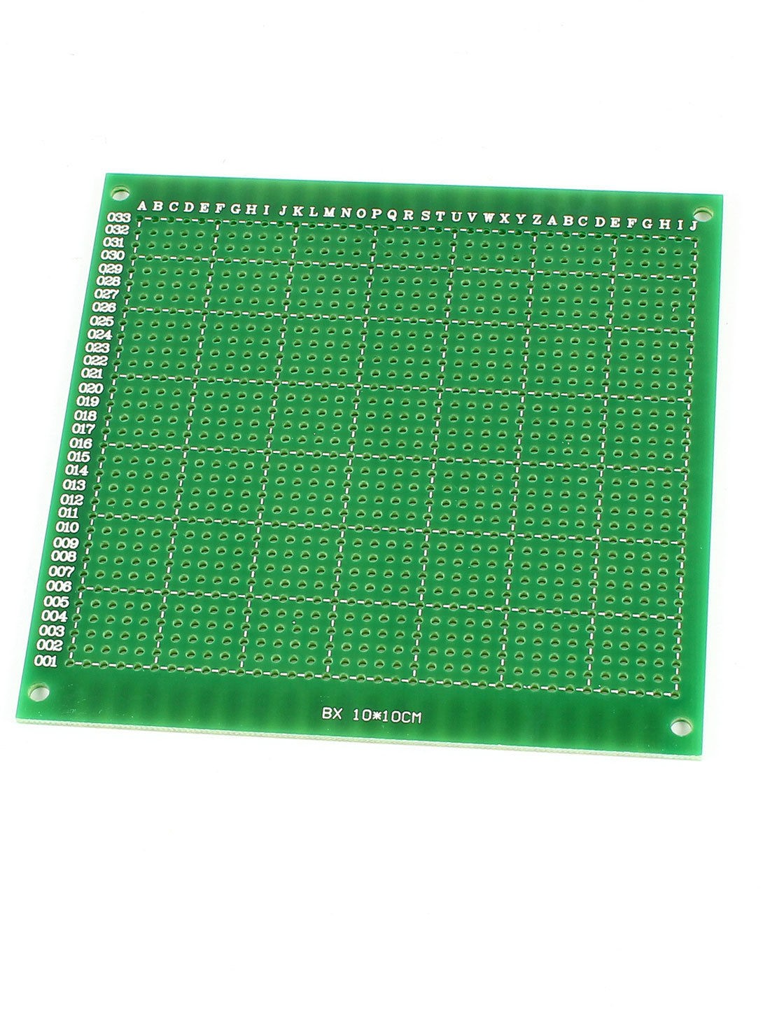 Product Name Universal PCB Board Hole Dia(Approx) 1mm / 0.039" Hole Pitch(Approx) 2.54mm / 0.1" Size(Approx) 10 x 10cm /4" x 4"(W*L) Thickness(Approx) 1.60mm / 0.063" Install Hole Dia 3mm/0.24" Install Hole Distance 9.4 x 9.2cm/3.7" x 3.6"(L*W) Material FR-4, Tin Color Green, Silver Tone Net Weight 26g Package Content 1 x Universal PCB Board - Reviews
