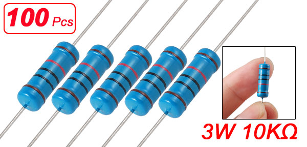 10K Ohm 3W 1% Axial Lead Metal Film Resistor 100 Pcs