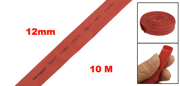 10M 12mm Dia. Heat Shrinking Shrinkable Tube Tubing Red