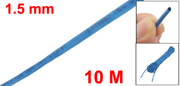 10M 32.8 Ft Long 1.5mm Dia. Blue Polyolefin Heat Shrinkable Tube