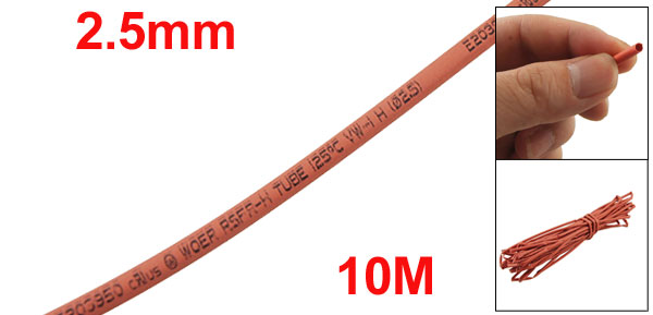 10M 32.8ft 2.5mm Red Tube Sleeving Sleeve Heat Shrink Tubing