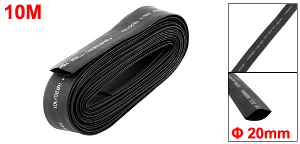 10M 33Ft 20mm Dia Ratio 2:1 Polyolefin Heat Shrinking Shrinkable Tubing Black
