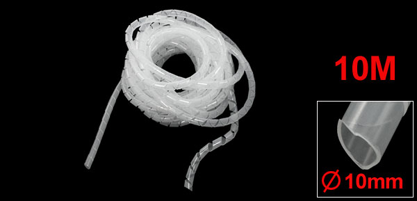 10Meter Long PE Polyethylene 10mm Spiral Cable Wire Wrap Tube White