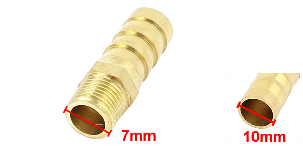 Product Name Hose Barb Coupler Type Male Thread to Hose Barb Barb Outside Diameter 10mm /1/8BSP Male Thread Diameter 7mm/1/16 BSP Overall Size 30 x 12mm / 1.2" x 0.5" (L*D.Max) Material Brass Color Brass Tone Net Weight 6g Package Content 1 x Hose Barb Coupler - Reviews