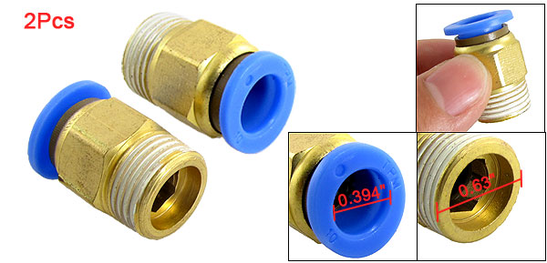 Item Name Quick Fittings Total Size 27 x 17mm/1" x 0.7"(L*W) Thread Diameter 16mm/0.63" Inner Diameter (Blue End) 10mm/0.394" Material Chrome Plated Brass & Plastic Color Gold Tone, Blue Weight 33g Package Content 2 x Quick Fittings - Reviews