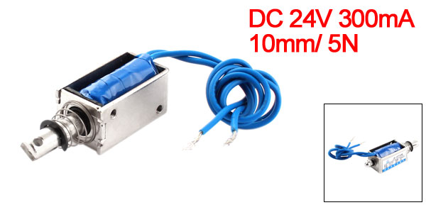 Product Name DC Solenoid Electromagnet Rated Voltage/ Current DC 24V 300mA Action Form Push Pull Type Force Stroke: 10mm/ 5N