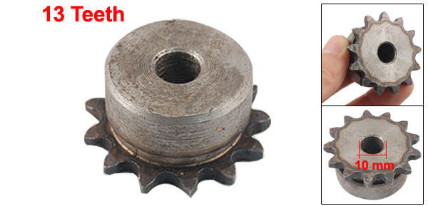 Product Name Chain Drive Sprocket Material Metal Teeth Number 13 Pitch 10mm/0.39'' Upper Diameter 43mm/1.7'' Bottom Diameter 33mm/1.3'' Bore Diameter 10mm/0.39'' Total Height 20mm/0.8'' Net Weight 122g Package Content 1 x Chain Drive Sprocket - Reviews